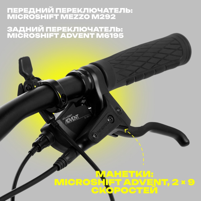 - Манетки: Microshift Advent, 2 × 9 скоростей.