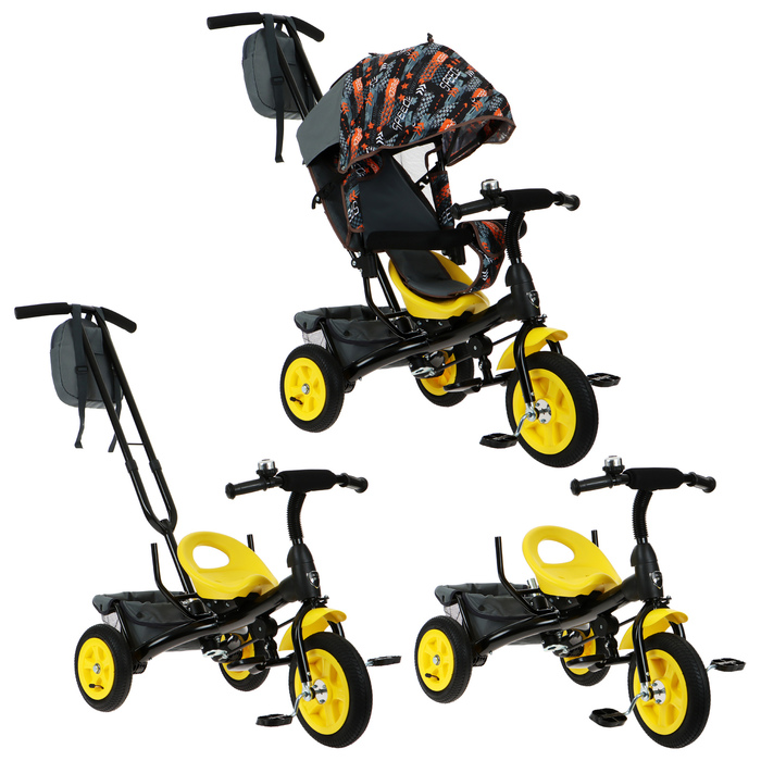 - Съёмные ручка и крыша позволяют трансформировать велосипед под любые условия.