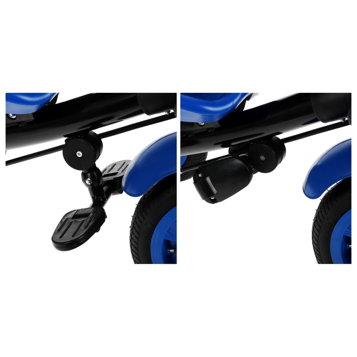- Надувные резиновые колёса смягчают ход и обеспечивают сцепление с дорогой.