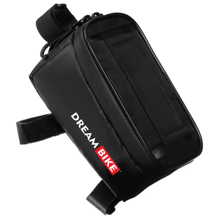 Велосумка Dream Bike — удобный аксессуар для хранения необходимых вещей при катании на велосипеде. У изделия есть специальное отделение для смартфона с системой touch screen, которая позволяет пользоваться устройством даже во время передвижения. Сумка легко и надежно крепится на раму при помощи строп с лентой-липучкой.