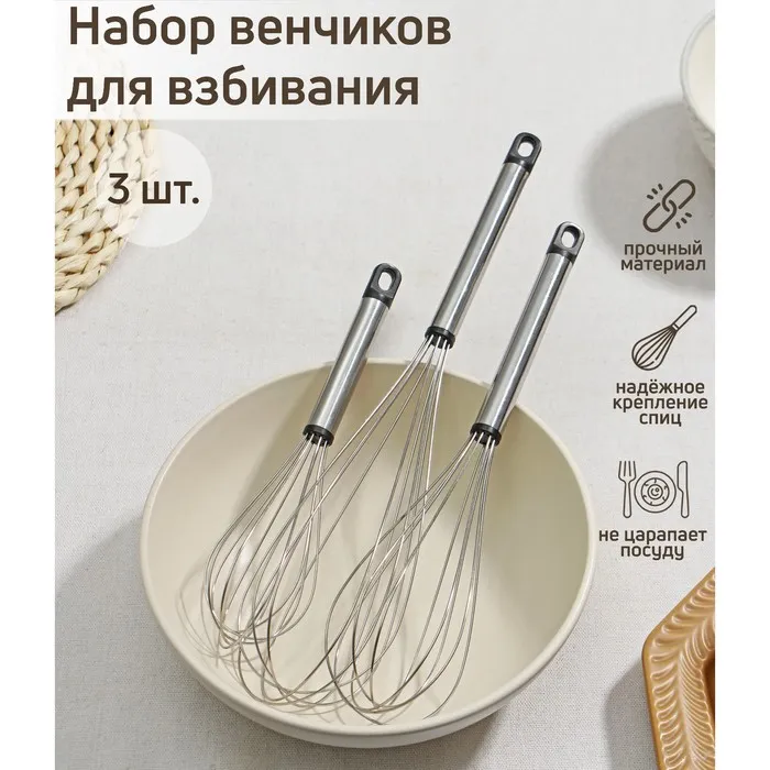 - Венчик поможет быстро взбить крем из белков и жирных сливок для украшения кондитерских изделий, а также перемешать ингредиенты для приготовления пышных оладий.