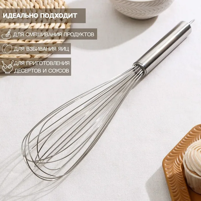 Венчик для взбивания KONFINETTA «Сильвер», струна 1.3 мм, 42×8×8 см, серебристый — Характеристики