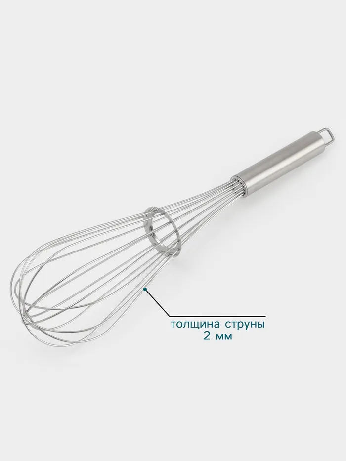 Этот венчик станет вашим надежным помощником в приготовлении блюд. Прочные струны толщиной 2 мм эффективно справляются с задачами, а удобная ручка обеспечивает надежный захват.