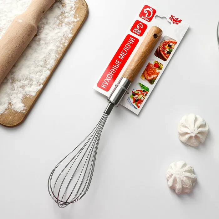 Представляем вашему вниманию венчик кулинарный «Валдай» от компании Доляна — незаменимый инструмент для любой кухни. Этот венчик обладает прочностью и долговечностью благодаря рабочей части и материалу ручки из нержавеющей стали, а также удобству использования благодаря деревянной ручке.