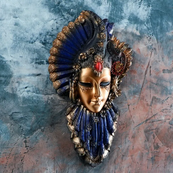 Венецианская маска "Рубин" золото, 32см МИКС