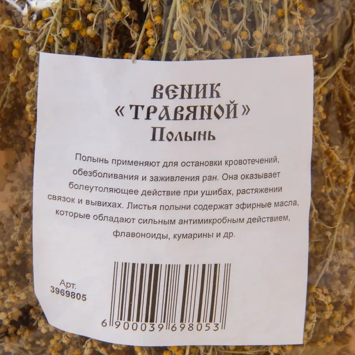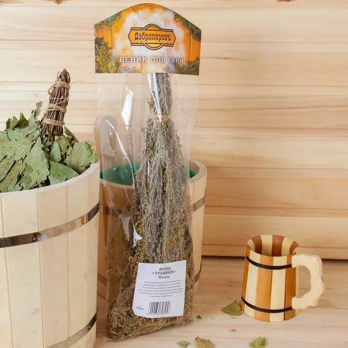 Веник для бани 45 (+-5) см ТРАВЯНОЙ из полыни, в индивидуальной упаковке — Характеристики
