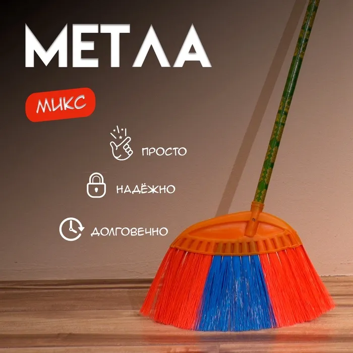 Веник для подметания - классический инструмент в современном исполнении, для использования в помещении и на улице. Веник прочный, изготовлен из легкого и прочного пластика, устойчивого к влаге и бытовой химии. Ворс не ломается и не выпадает даже при длительном использовании.