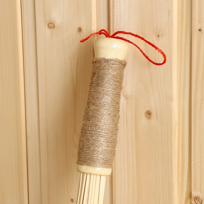 Веник массажный из бамбука для бани, 60 см, 0,2 см прут, джутовая ручка