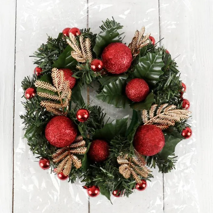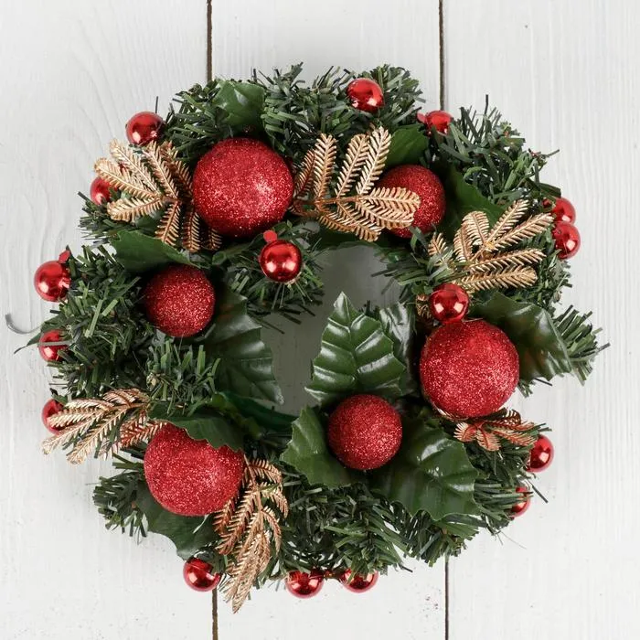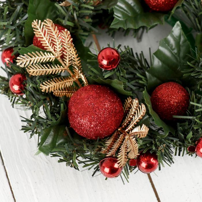 Венок новогодний d=20 см «Зимнее волшебство», с красными шариками — Характеристики