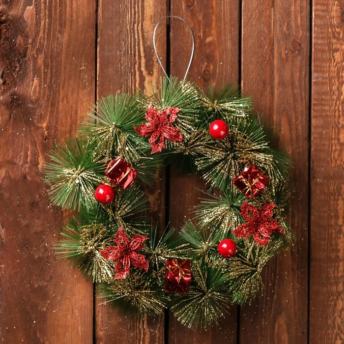 Венок новогодний d=20 см «Зимнее волшебство», зелёный с красными цветами — Характеристики