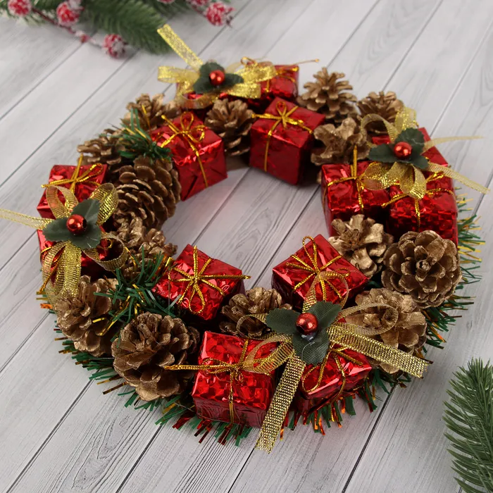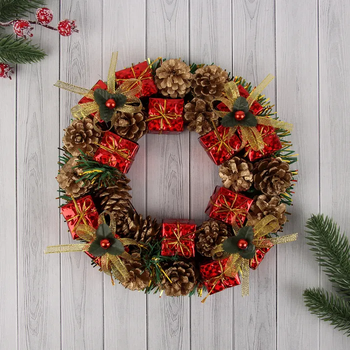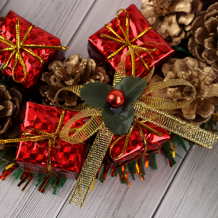 Венок новогодний d=22 см «Зимнее волшебство», с шишками и подарками — Характеристики