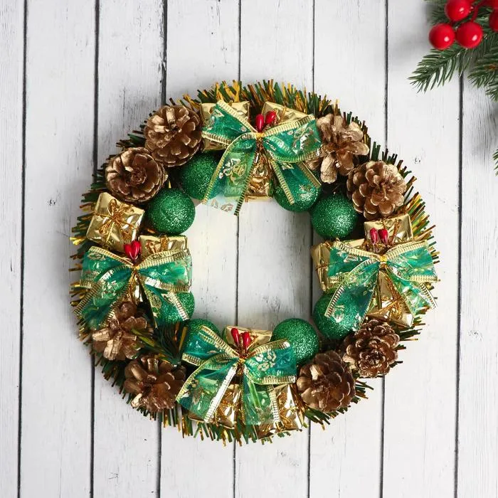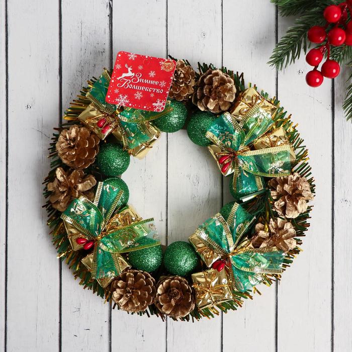 Венок новогодний d=22 см «Зимнее волшебство», зелёные бантики с шариками — Характеристики