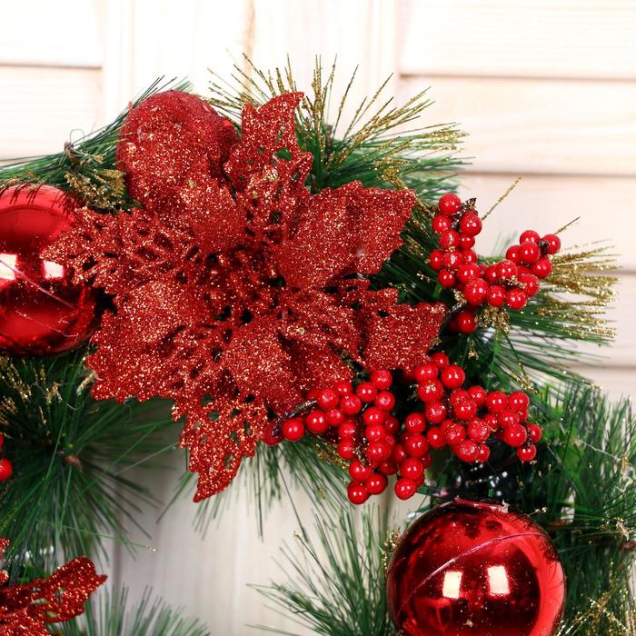 Венок новогодний d=25 см «Зимнее волшебство. Красные ягоды и шишки» — Характеристики
