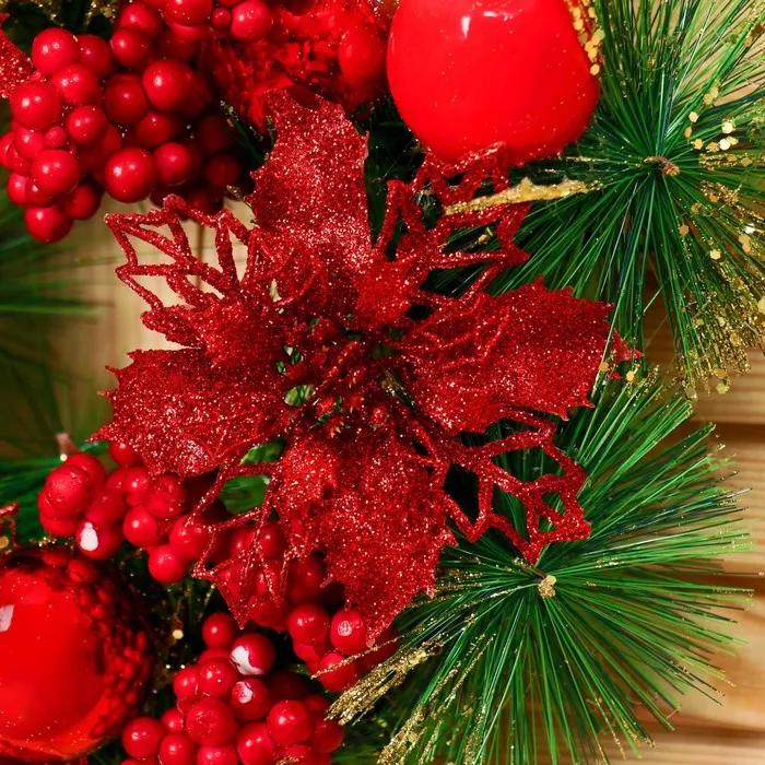 Позвольте Вашему дому засиять в новогодней атмосфере с очаровательными украшениями. Созданные для тех, кто ценит тепло и уют зимних праздников. Венок станет ярким акцентом вашего интерьера.