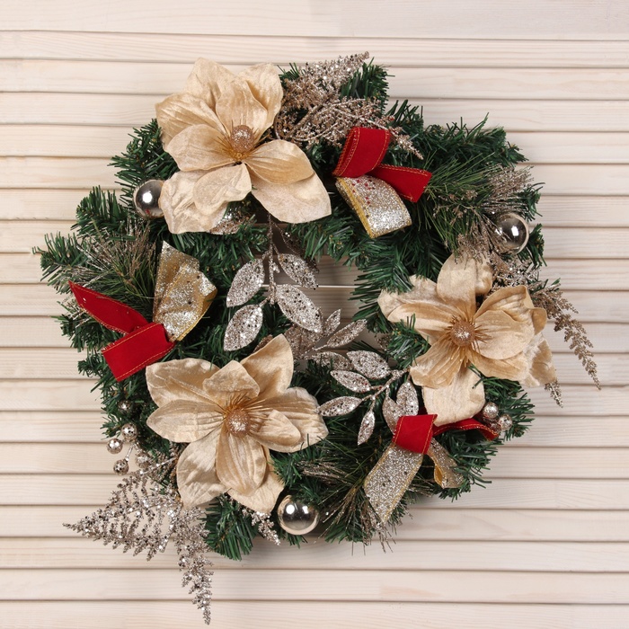 Этот венок привносит в интерьер лёгкость и свежесть зимнего леса. Его белоснежный фон и натуральные детали напоминают о тихих снежных вечерах и семейных традициях. Украшая пространство таким венком, вы добавляете нотку теплоты и уюта в праздничный декор.