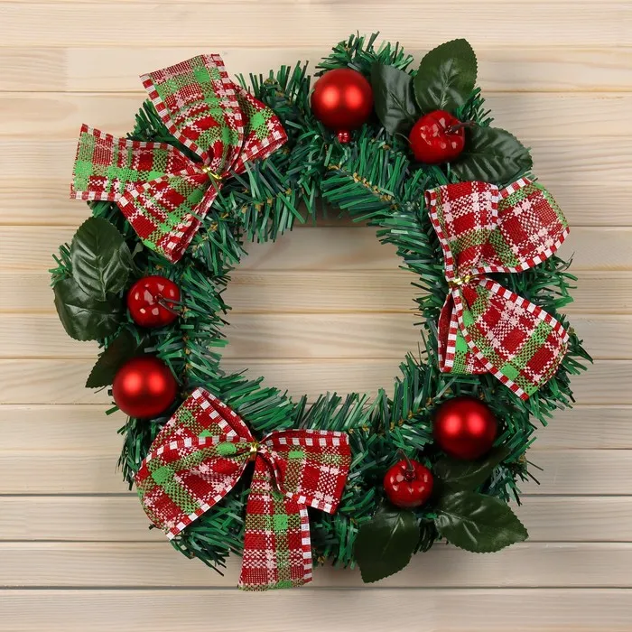 Венок отличается долговечностью и стойкостью к внешним воздействиям, что позволяет использовать его не один сезон. Классический стиль оформления делает его универсальным элементом декора, который легко впишется в любой интерьер, добавляя ему уюта и праздничного настроения.