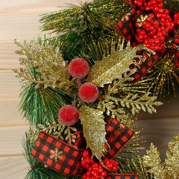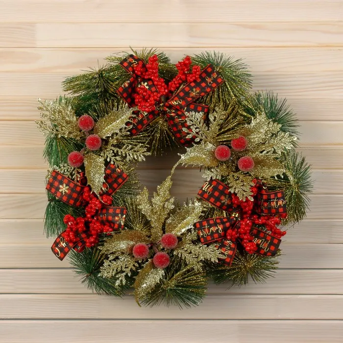 Венок новогодний d=30 см «Зимнее волшебство. Яркая сказка», с золотистыми листьями — Характеристики