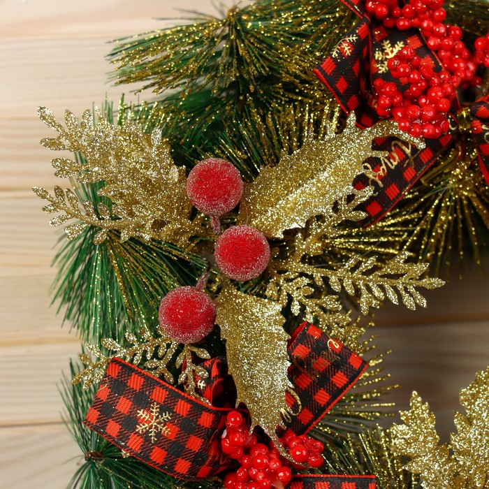 Венок новогодний d=30 см «Зимнее волшебство. Яркая сказка», с золотистыми листьями