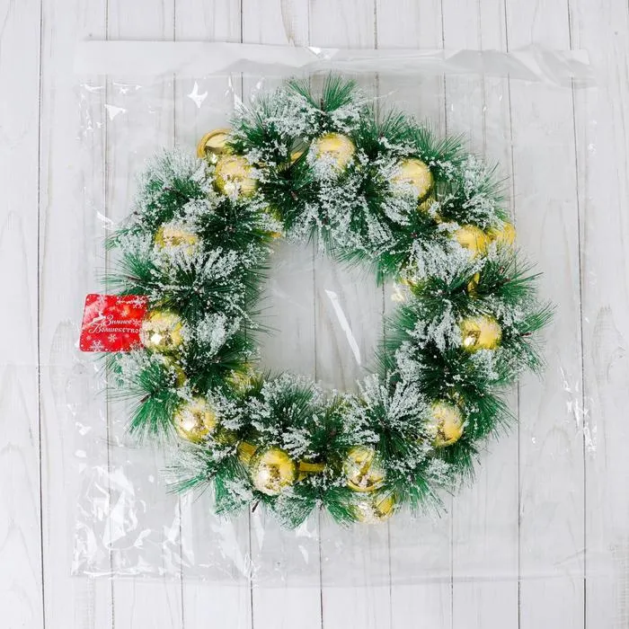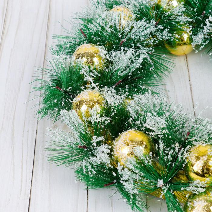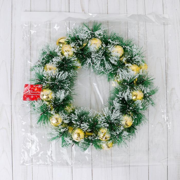 Венок новогодний d=30 см «Зимнее волшебство. Золотистые шарики в инее» — Характеристики