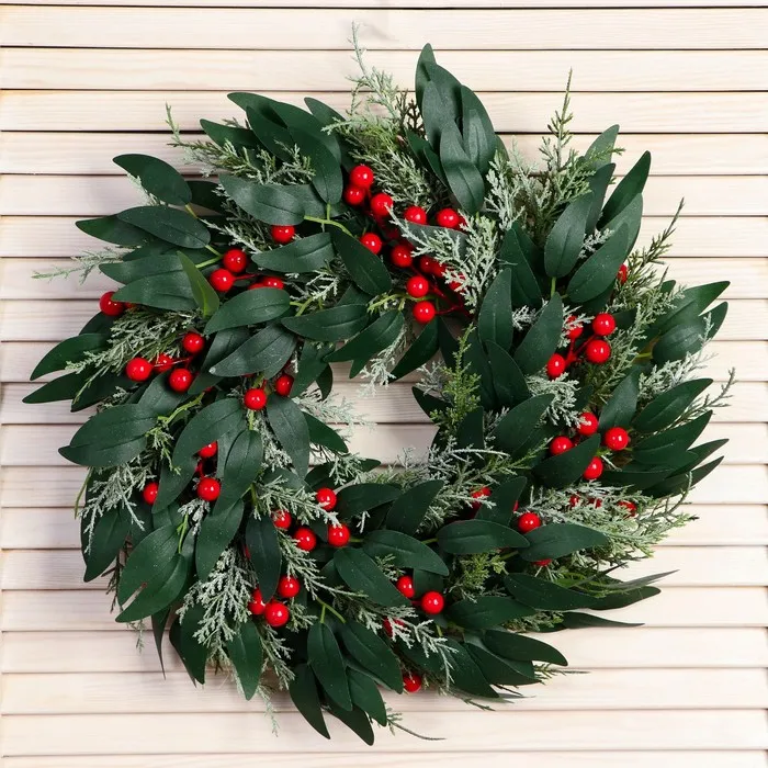 Венок - отличное решение для создания новогоднего уюта и атмосферы праздника. Декорирован листьями, ягодами и веточками, создаст праздничное настроение в вашем доме.