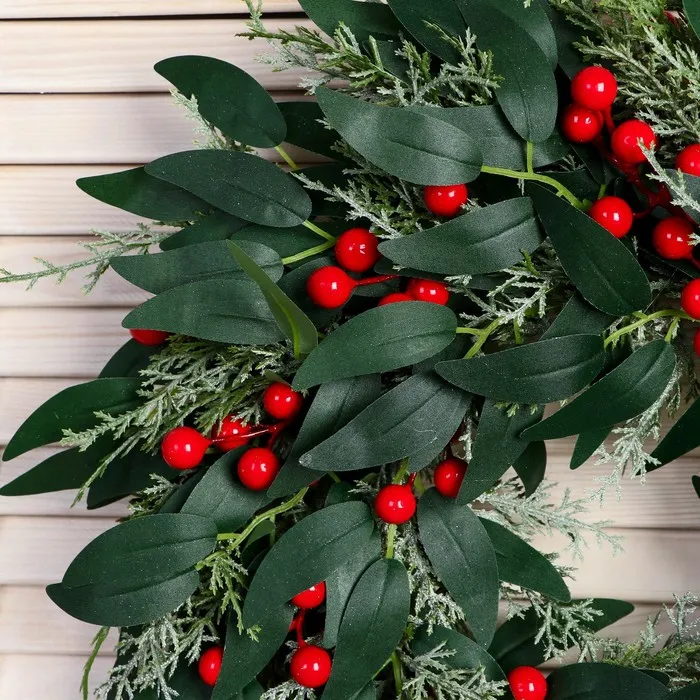 Венок новогодний d=33 см «Зимнее волшебство. Уютная сказка» листья, ягоды, веточки — Характеристики