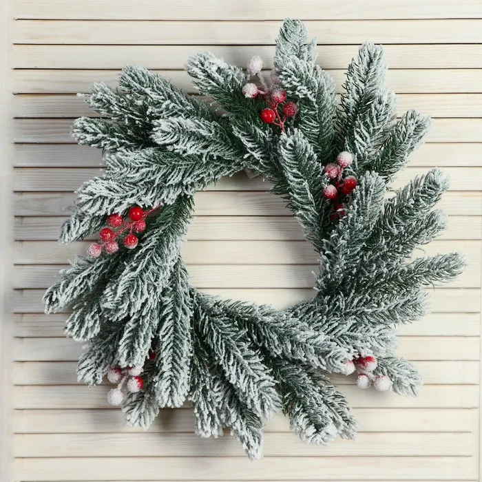 Венок новогодний d=33 см «Зимнее волшебство. Уютная сказка», в снегу, с ягодами — Характеристики
