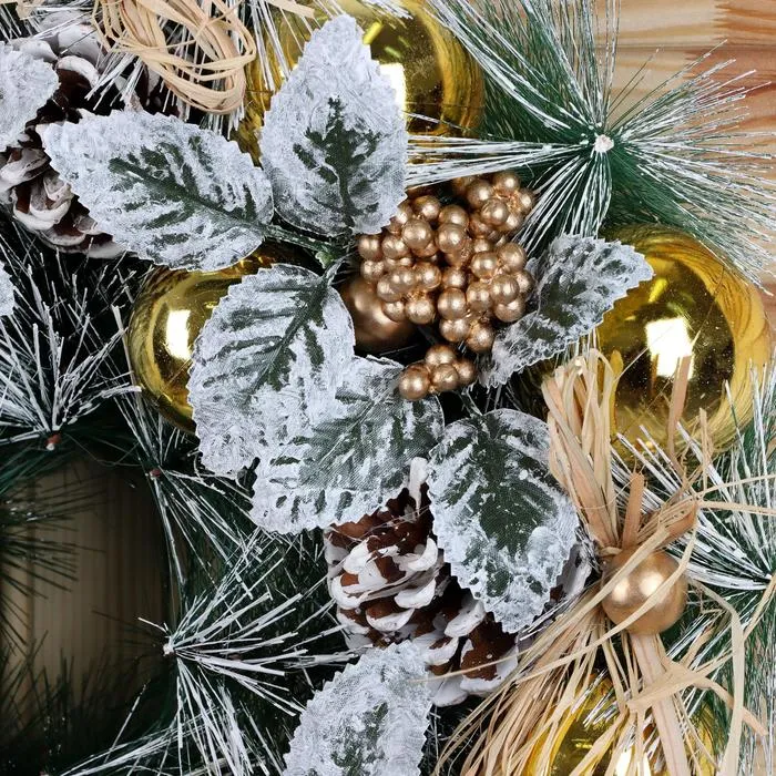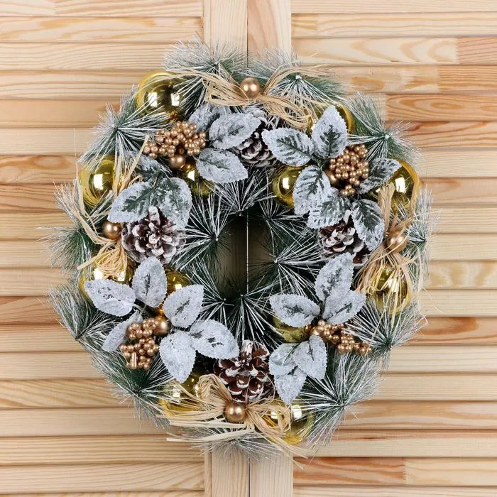 Венок новогодний d=34 см «Зимнее волшебство. Шишки и листья», в снегу — Характеристики