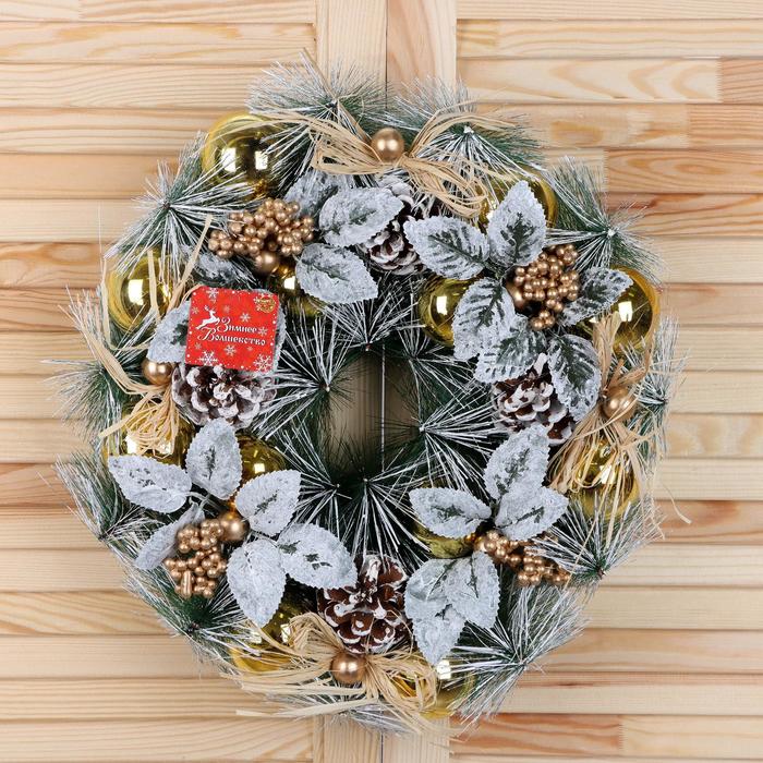 Венок новогодний d=34 см «Зимнее волшебство. Шишки и листья», в снегу