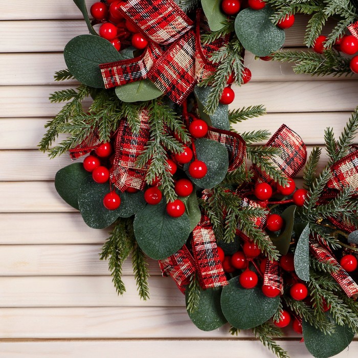 Венок новогодний d=35 см «Зимнее волшебство. Уютная сказка», с лентами, листьями и ягодами — Характеристики