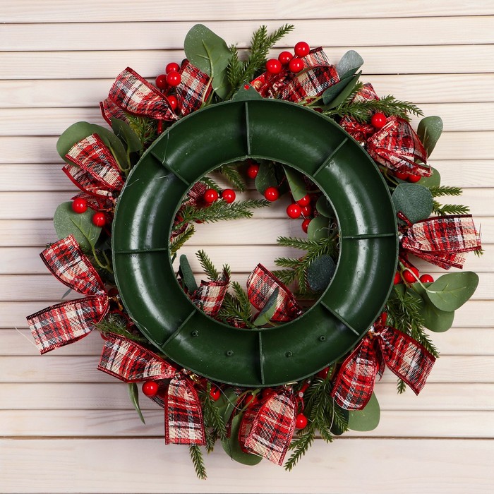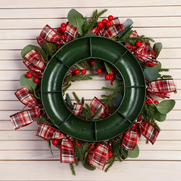 - Долговечность: искусственные материалы обеспечивают устойчивость к внешним воздействиям, позволяя использовать венок несколько сезонов подряд.