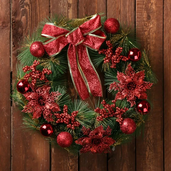 Погрузитесь в атмосферу волшебства зимних праздников с великолепным венком, который станет ярким акцентом вашего интерьера.