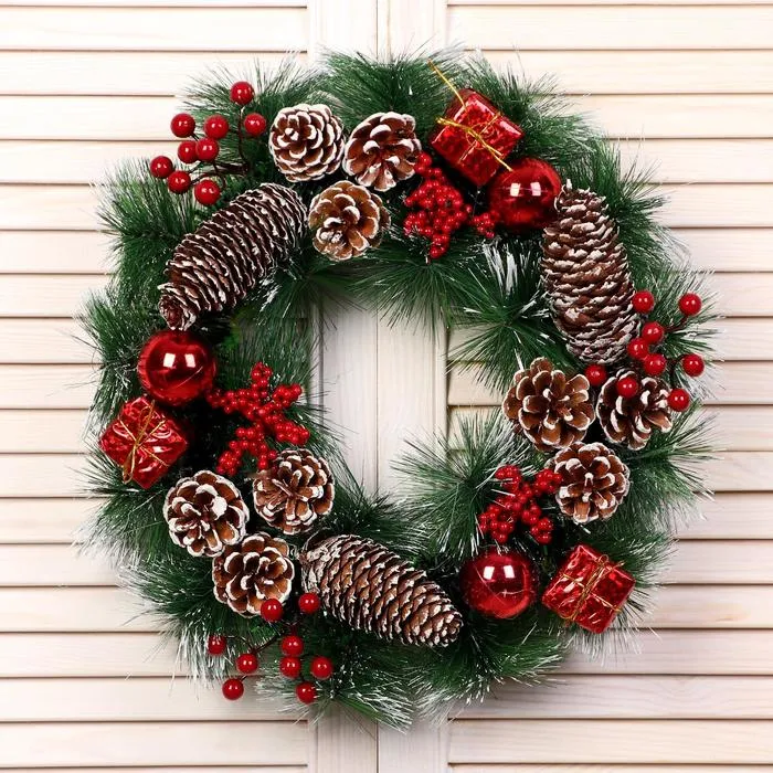 Погрузитесь в атмосферу волшебства зимних праздников с великолепным венком, который станет ярким акцентом вашего интерьера.