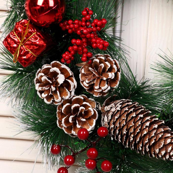 Венок новогодний d=36 см «Зимнее волшебство. Шишки», с красным декором