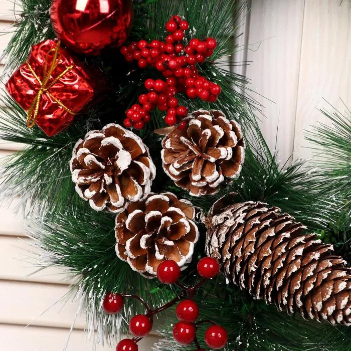 Венок новогодний d=36 см «Зимнее волшебство. Шишки», с красным декором — Характеристики