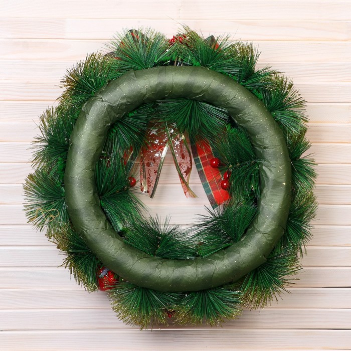 Венок новогодний d=37 см «Зимнее волшебство. Уютная сказка» бант в клетку — Характеристики