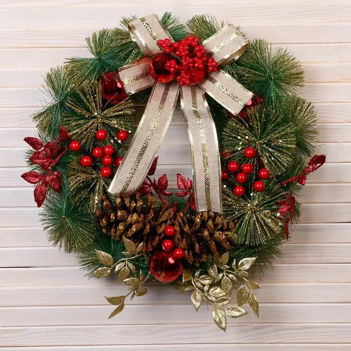Позвольте Вашему дому засиять в новогодней атмосфере с очаровательными украшениями. Созданные для тех, кто ценит тепло и уют зимних праздников. Венок станет ярким акцентом вашего интерьера.
