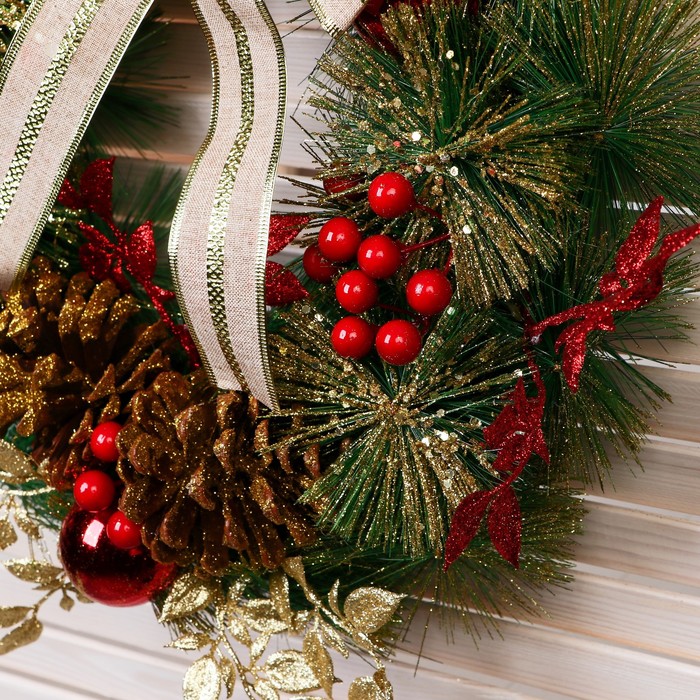 Венок новогодний d=37 см «Зимнее волшебство. Уютная сказка», с бантом — Характеристики