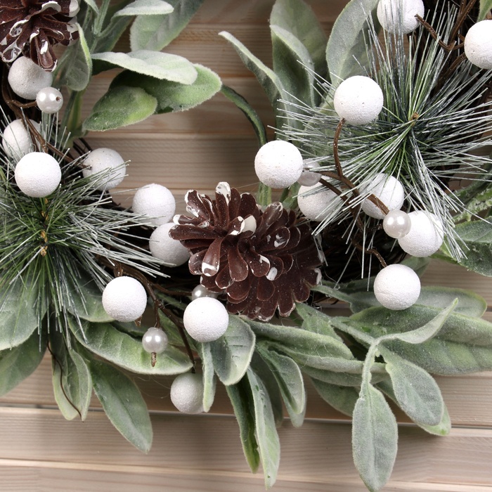 Венок новогодний d=38 см «Зимнее волшебство. Ягоды», белый декор — Характеристики