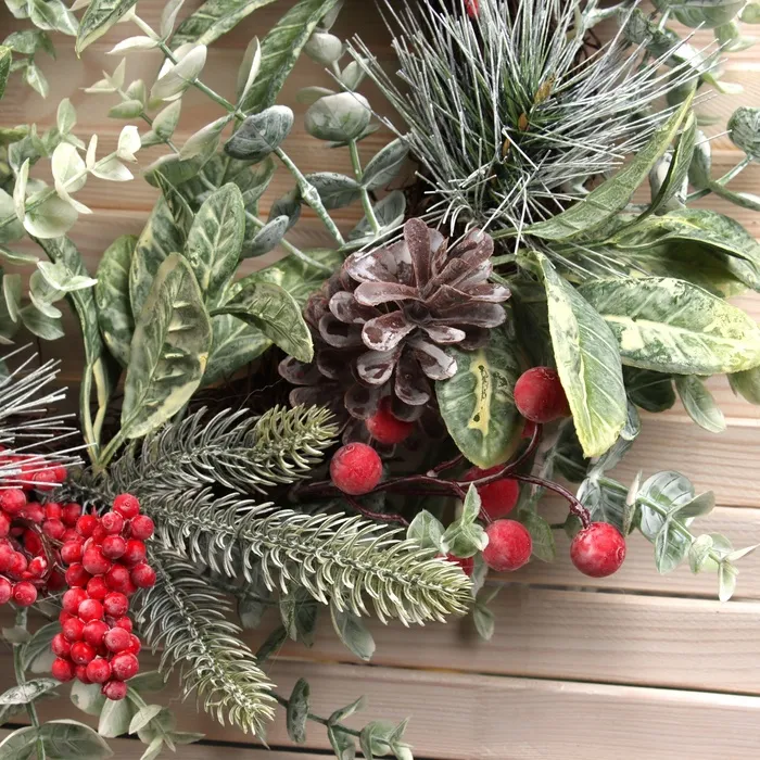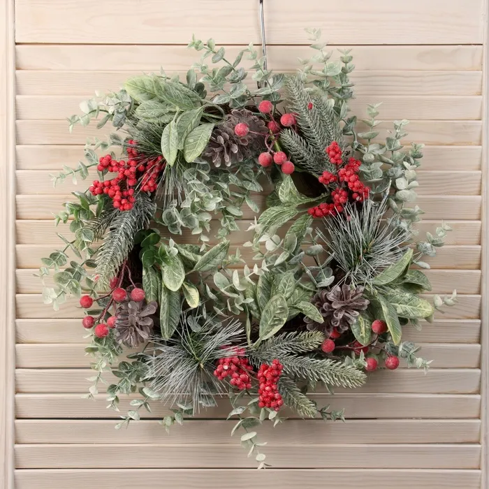 Погрузитесь в атмосферу волшебства зимних праздников с великолепным венком, который станет ярким акцентом вашего интерьера.