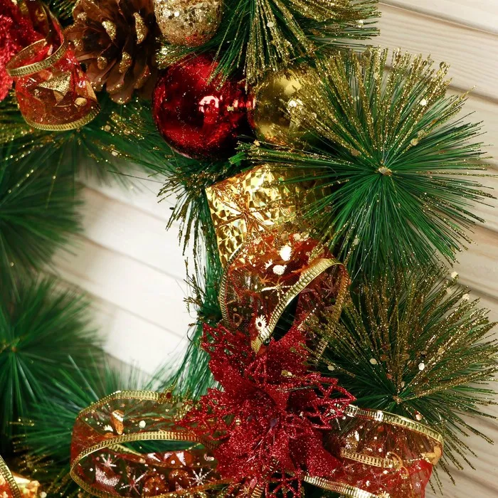 Погрузитесь в атмосферу волшебства зимних праздников с великолепным венком, который станет ярким акцентом вашего интерьера.