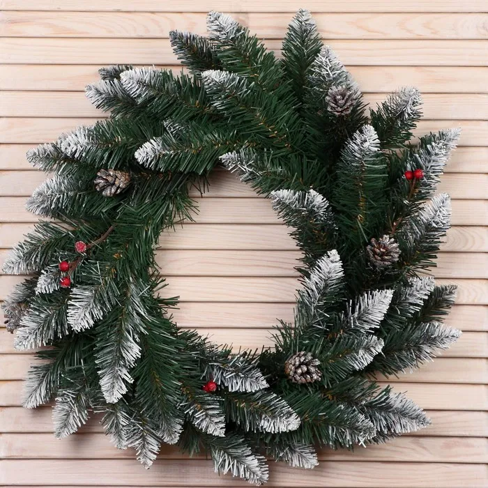 Венок новогодний d=45 см «Интерьерный белоснежная» декор шишки серебро, ягоды — Характеристики