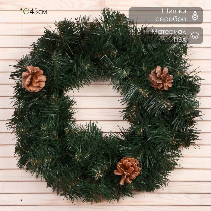 Венок новогодний d=45 см «Крымский» декор с шишками — Характеристики