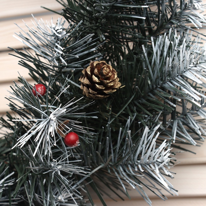 Венок новогодний d=45 см «Рождественский белоснежный» декор шишка золото, иней, ягода — Характеристики