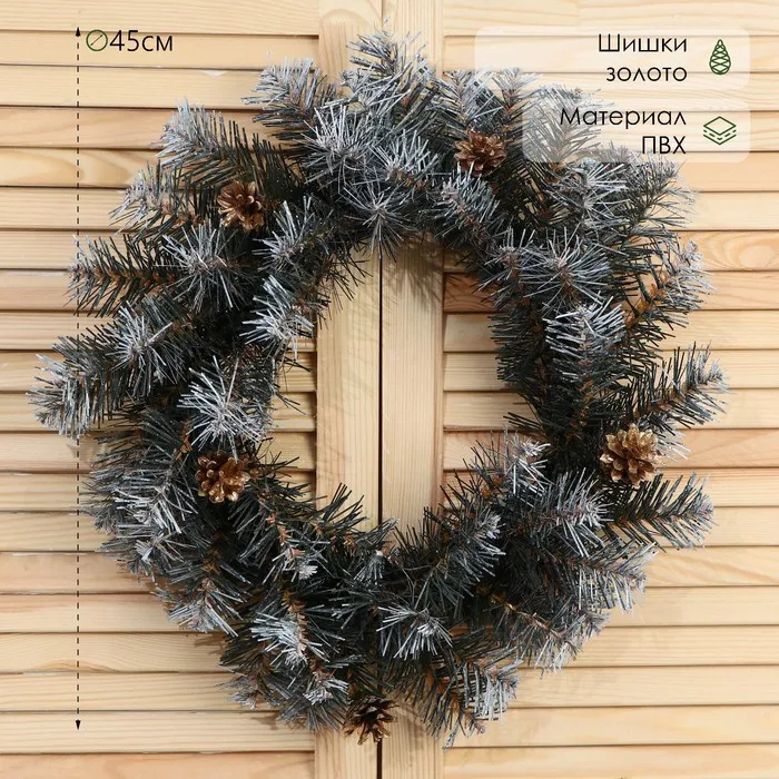 Венок новогодний d=45 см «Зимняя сказка» с золотыми шишками — Характеристики