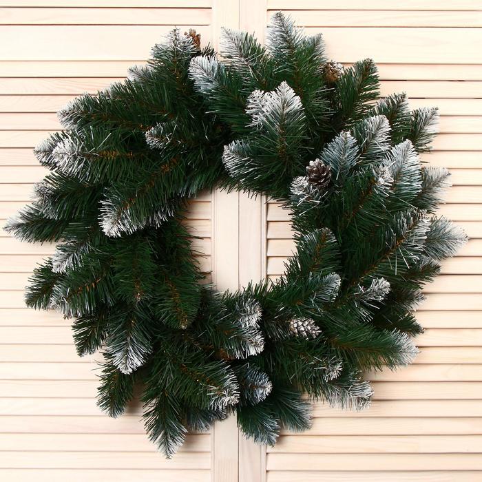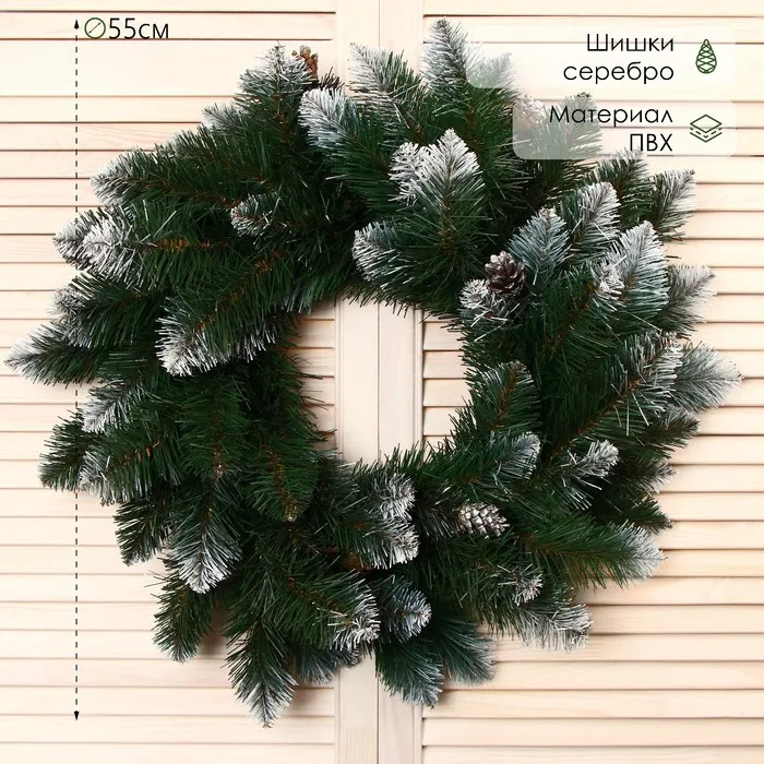 Венок новогодний d=55 см «Интерьерный белоснежный» с серебристыми шишками — Характеристики
