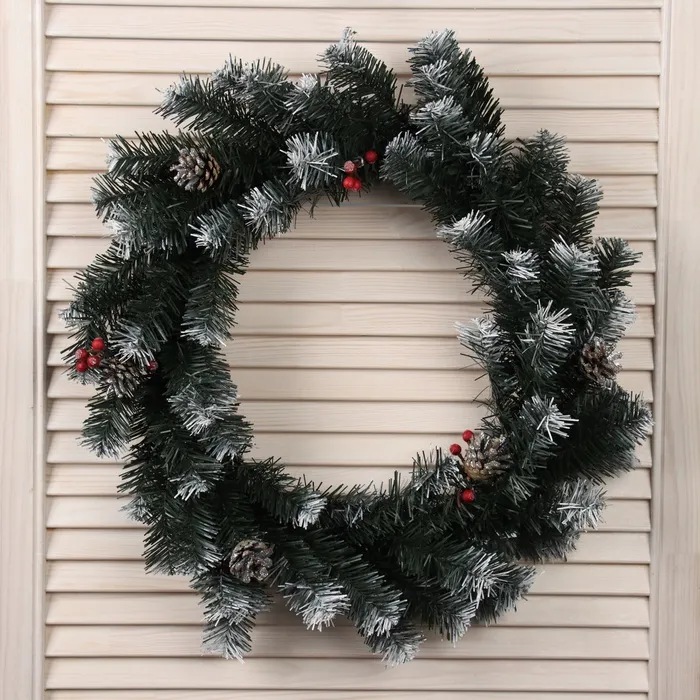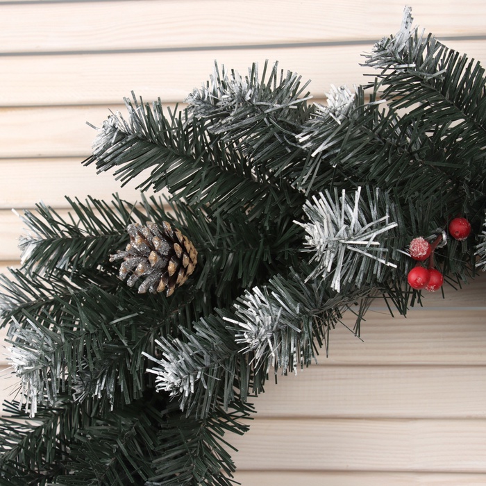 Венок новогодний d=55 см «Рождественский иней» декор шишка серебро, ягода — Характеристики