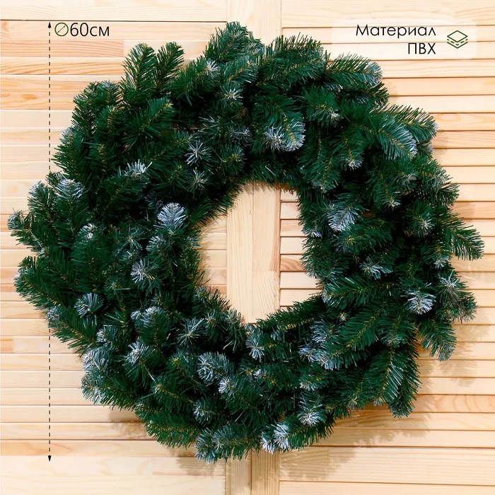 Венок новогодний d=60 см «Премиум», с белыми кончиками — Характеристики