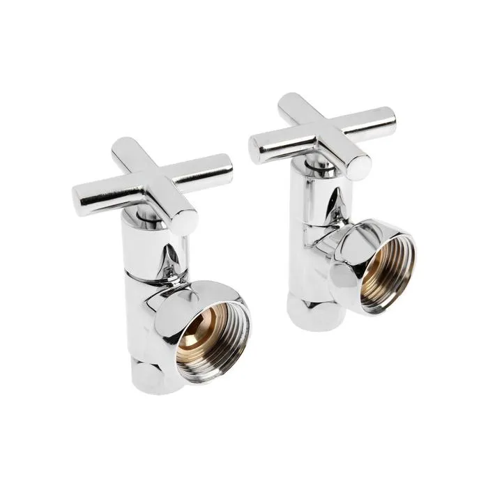 Функциональность и стиль для вашей ванной! Хромированные угловые вентили для полотенцесушителя — комплект из 2 штук с удобной крестообразной ручкой. Оптимальное решение для подключения и регулировки водяных сушителей.