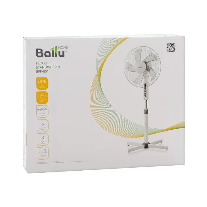 Вентилятор напольный Ballu BFF-801 работает максимально тихо, так как оснащен 5 аэродинамичными лопастями, помогающими реализовывать технологию SLEEP WELL. Прибор имеет эргономичную панель управления, поэтому прост и безопасен в использовании. Вентилятор работает в 3 скоростных режимах: вы легко сможете подобрать наиболее оптимальный. Важная особенность прибора — крестовое основание с повышенной устойчивостью, что достигается за счет увеличенной длины перекладин. Вентилятор выполнен из высококачественных безопасных материалов, его качество и безопасность подтверждаются сертификатами соответствия европейским стандартам.