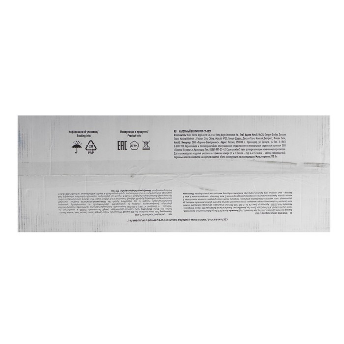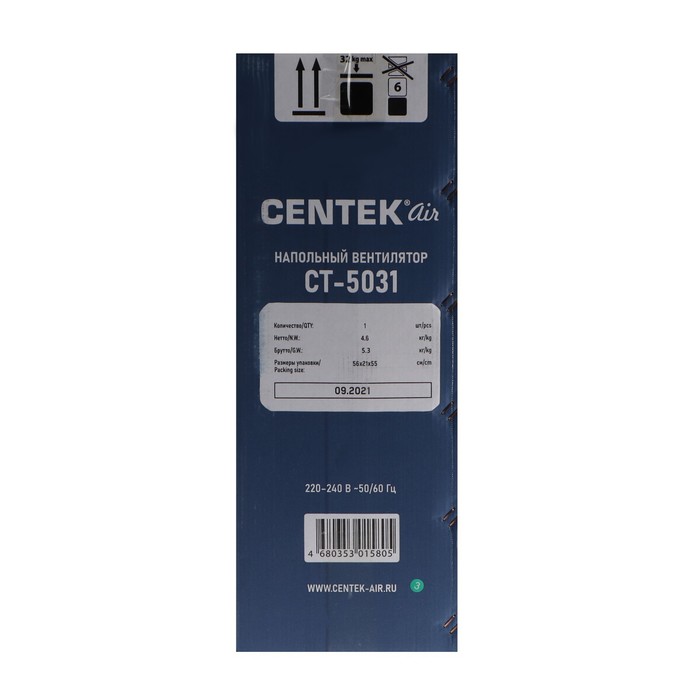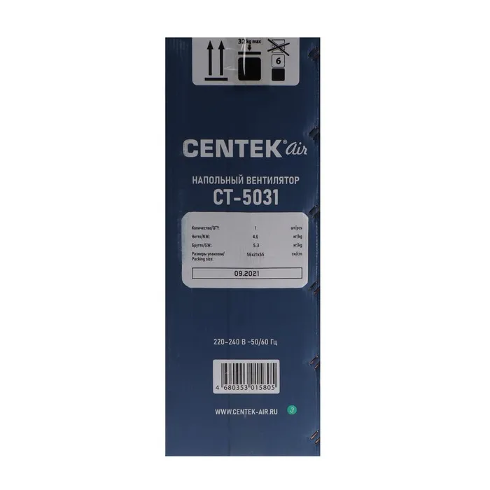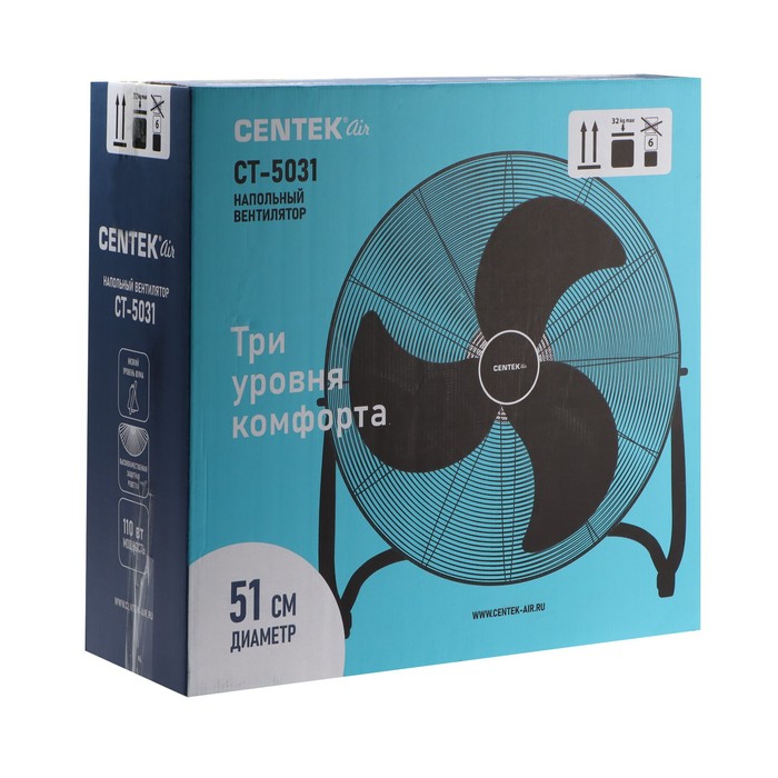 Вентилятор Centek CT-5031, напольный, 110 Вт, 51 см, 3 скорости, наклон по вертикали — Характеристики